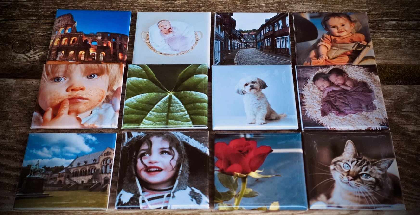 Du kannst ganz einfach Fotos im JPG-, PNG- oder HEIC-Format hochladen. Wichtig ist nur, dass sie gut genug sind – also nicht zu klein oder unscharf – damit das Magnetfoto später richtig toll aussieht